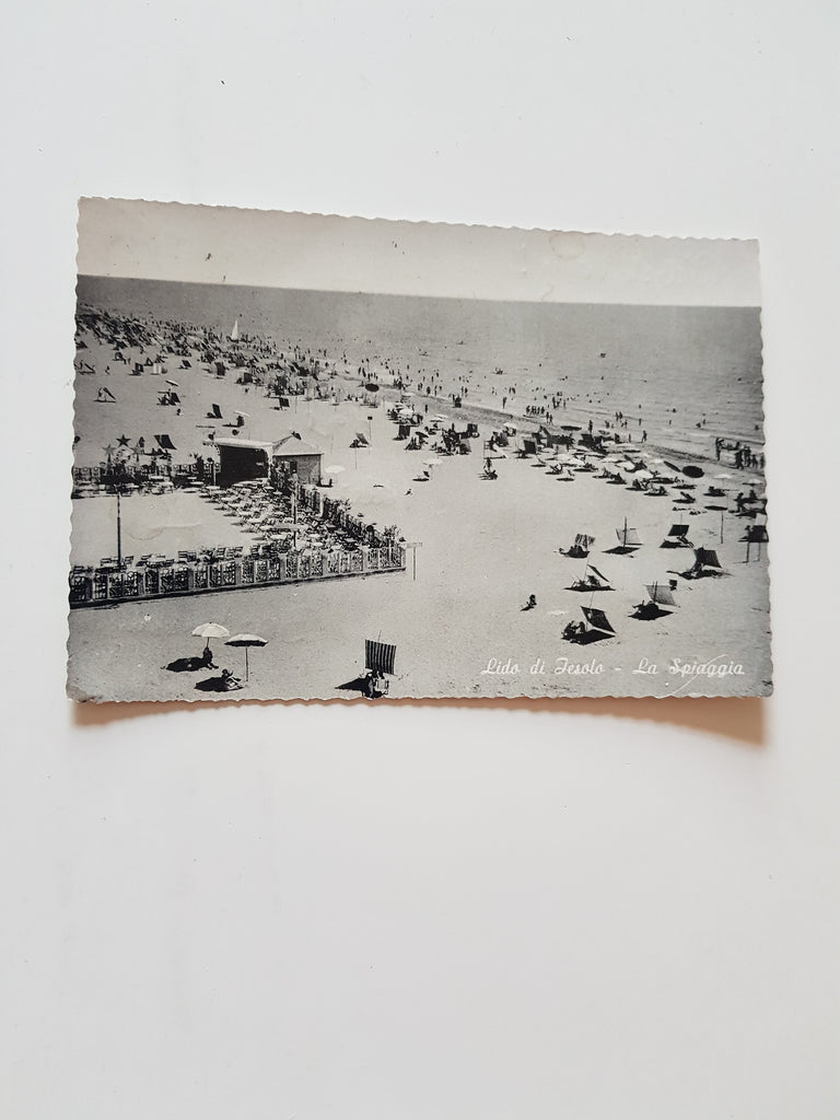 AK Lido di Jesolo La Spiaggia. Gelaufen. Großformat. Zustand: gut, linkes unteres Eck geknickt.