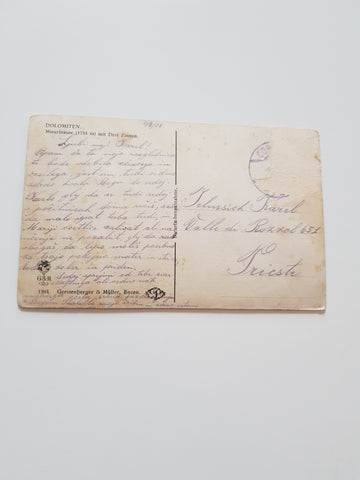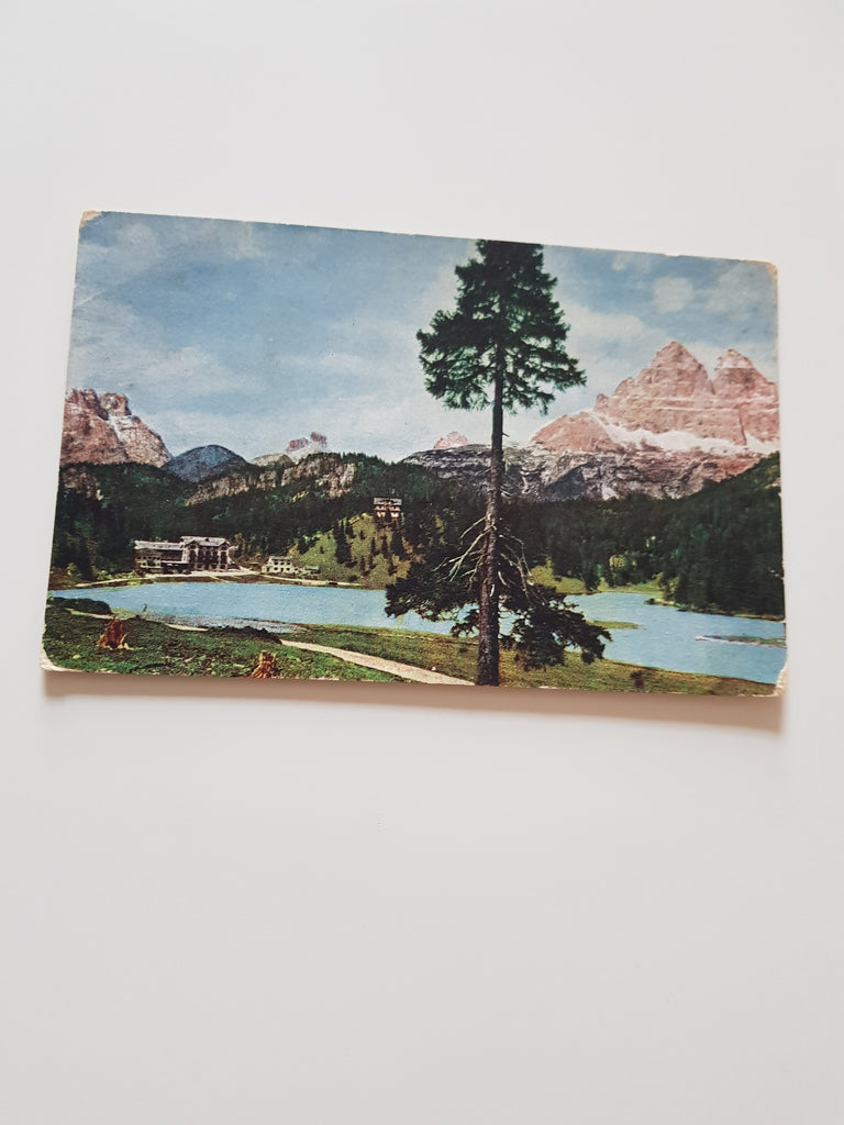 AK Misurinasee. Gelaufen, aber Briefmarke wurde entfernt. Kleinformat. Nummeriert: 1204. Zustand: stark bestoßen.