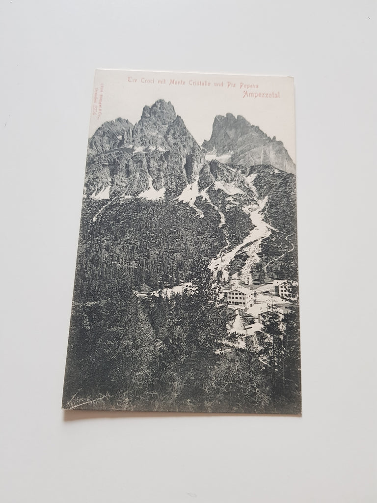 AK Tre Croci mit Monte Cristallo und Piz Popena. Ampezzotal. (1904) Ungelaufen. Kleinformat. Verlag: Stengel & Co. Nummeriert: 2754. Zustand: gut.