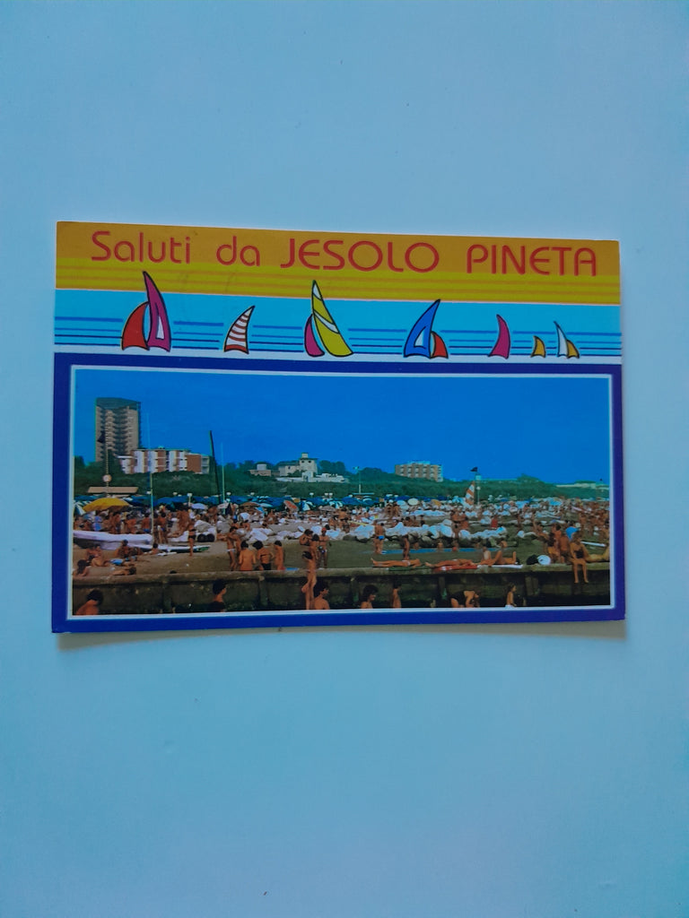 AK Saluti da Jesolo Pineta. Gelaufen. Großformat. Verlag: Favalli. Nummeriert: 773. Zustand: leicht bestoßen.
