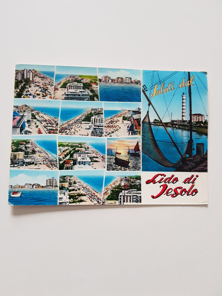AK Saluti dal Lido di Jesolo. Gelaufen. Großformat. Zustand: gut, Ecken leicht angestoßen.