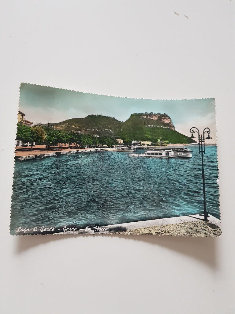 AK Lago di Garda - Garda - La Rocca. Gelaufen. Großformat. Zustand: Einriss am rechten Rand.
