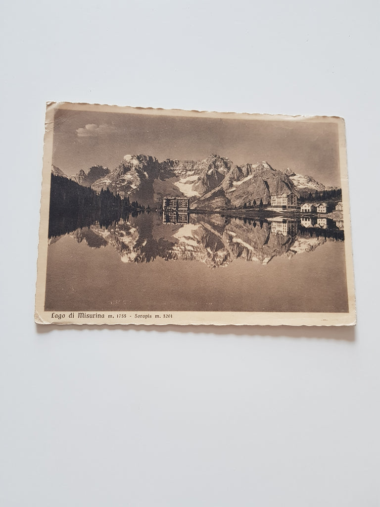 AK Lago di Misurina. Ungelaufen. Großformat. Zustand: Ecken geknickt.