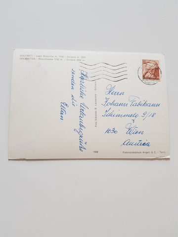 AK Lago di Misurina. Gelaufen. Großformat. Nummeriert: 1008. Zustand: gut, linkes unteres Eck angeknickt.