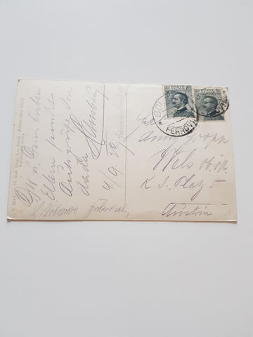 AK Lago di Misurina. Grand Hotel. Gelaufen. Kleinformat. Verlag: Fränzl. Nummeriert: 523-8. Zustand: gut, linke Ecken angeknickt.