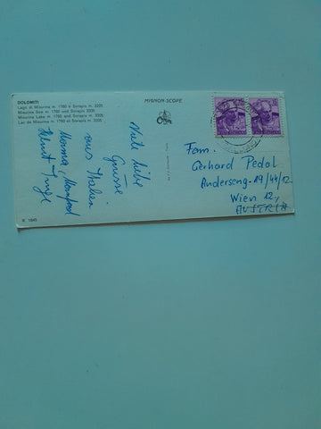 AK Lago di Misurina. Gelaufen. Extrakleinformat. Nummeriert: 1645. Zustand: gut, linkes oberes Eck angeknickt.
