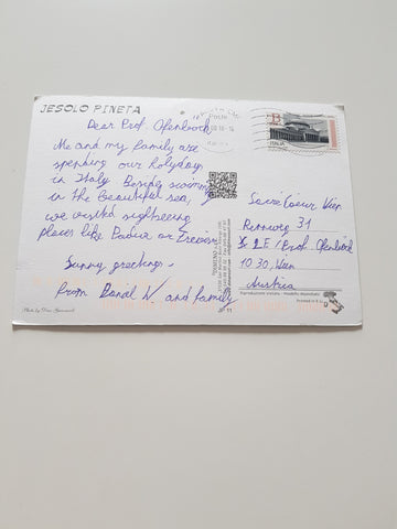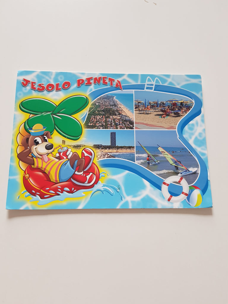 AK Jesolo Pineta. Gelaufen. Neues Großformat. Verlag: Dimeno. Zustand. Ecken angeknickt, Stecknadeldurchstich oben in Mitte.
