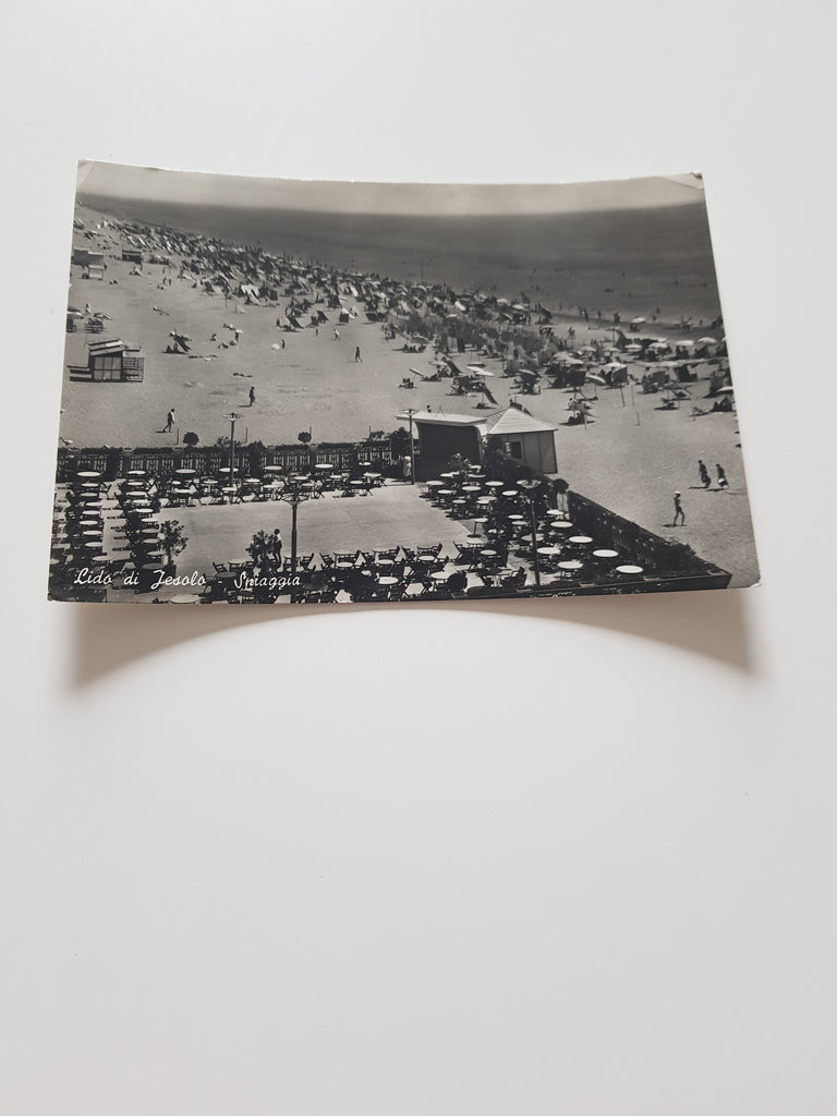 AK Lido di Jesolo. Spiaggia. Gelaufen. Großformat. Zustand: obere Ecken geknickt.