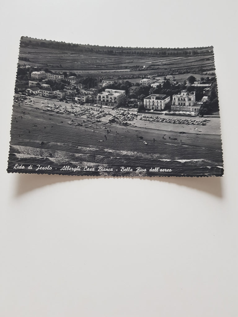 AK Lido di Jesolo. Alberghi Casa Bianca Bella Riva dall'aereo. Gelaufen. Großformat. Zustand: gut.