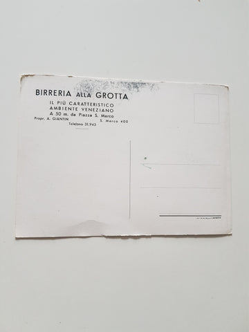 AK Venezia. Birreria alla Grotta. Propr. A. Giantin. S. Marco. Ungelaufen. Großformat. Zustand: rechtes oberes Eck und am unteren Rand geknickt.