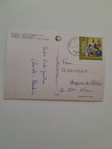 AK Lago di Misurina. Gelaufen. Großformat. Nummeriert: 10.50. Zustand: gut, linkes oberes Eck geknickt.