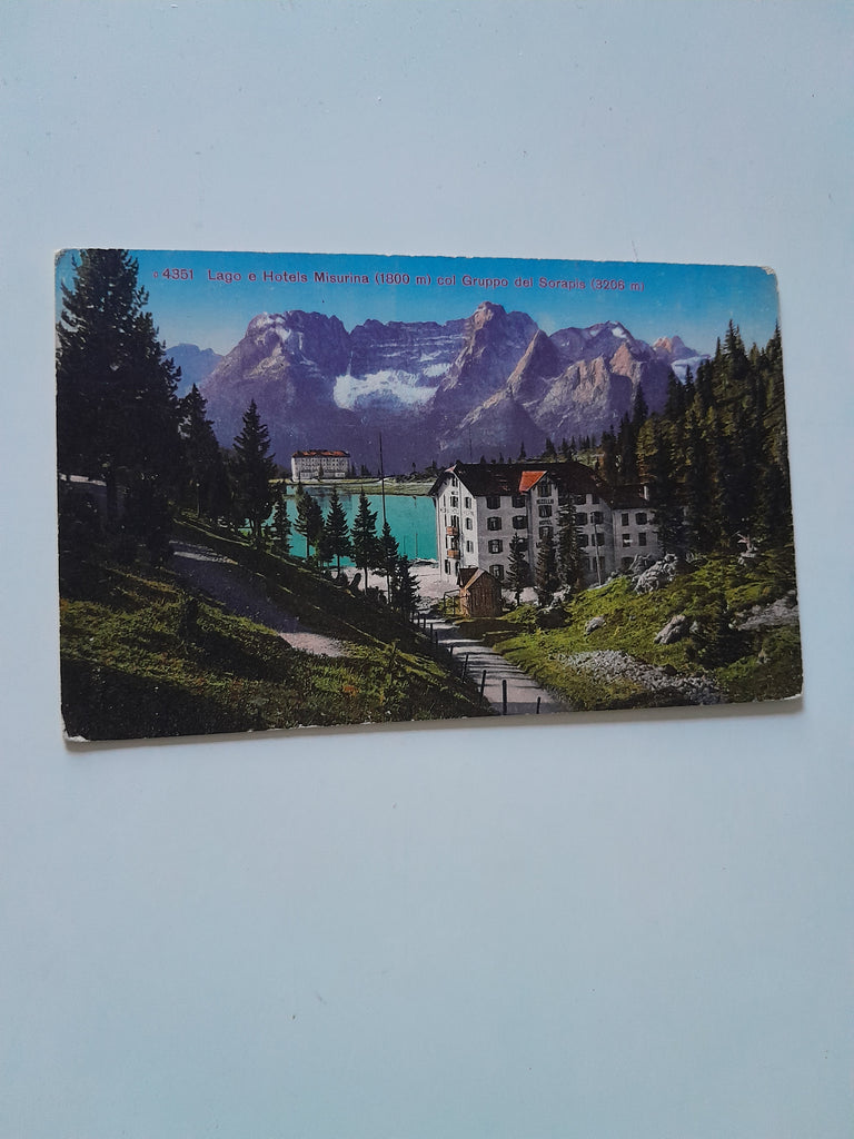 AK Lago e Hotels Misurina col Gruppo del Sorapis. Ungelaufen. Kleinformat. Verlag: Edition Photoglob. Nummeriert: 4351. Zustand: gut, Ecken leicht angestoßen.