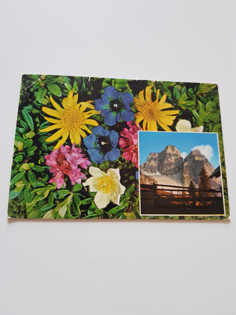 AK Monte Pelmo. Flora delle Dolomiti. Gelaufen. Großformat. Nummeriert: 08 82. Zustand: stärker bestoßen.