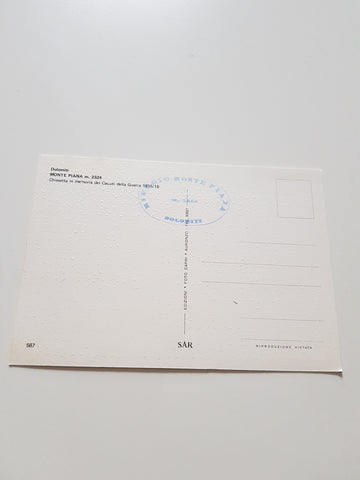 AK Monte Piana. Chiesetta in memoria dei Caduti della Guerra 1915/18. Ungelaufen. Großformat. Nummeriert: 587. Zustand: gut, Rückseite mit Albumspuren.