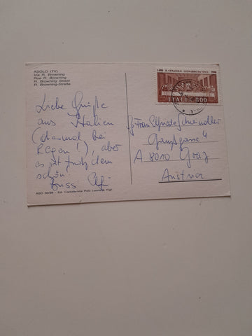 AK Asolo. Via R. Browning. Gelaufen. Großformat. Nummeriert: 50/98. Zustand: Einriss am linken Rand, rechtes unteres Eck geknickt.