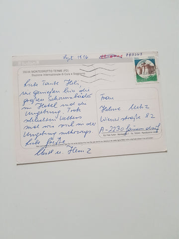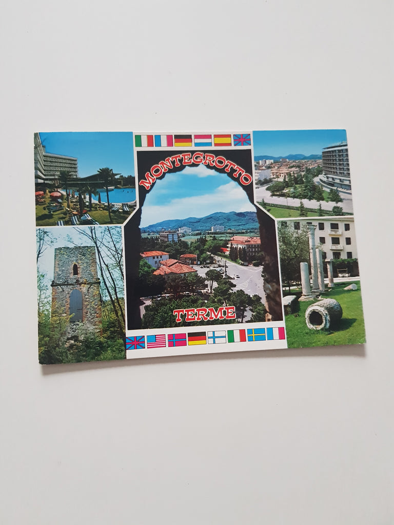 AK Montegrotto Terme. Gelaufen. Großformat. Zustand: linkes oberes Eck geknickt, rechtes unteres Eck angeknickt.