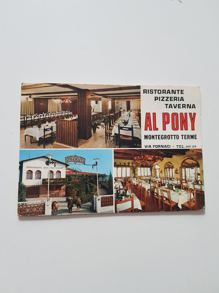 AK Montegrotto Terme. Ristorante Pizzeria Taverna Al Pony. Via Fornaci. Ungelaufen. Großformat. Nummeriert: 367. Zustand: stärker bestoßen.