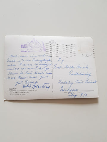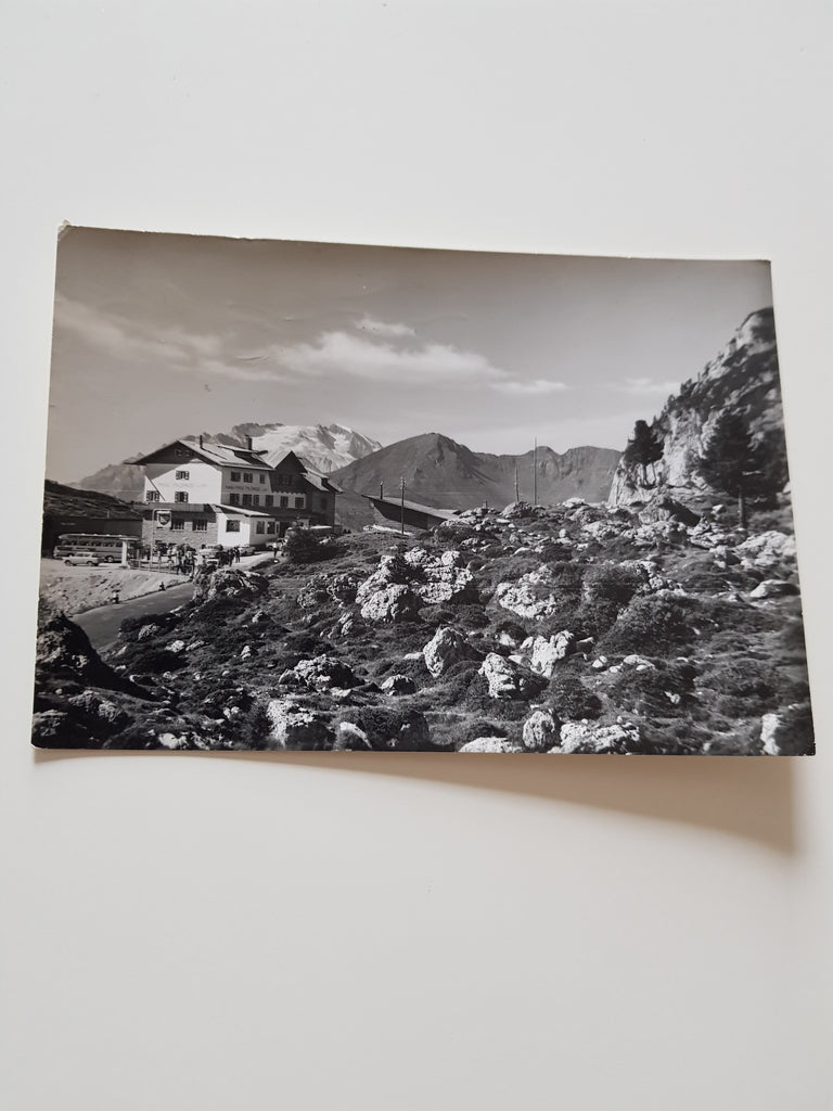 AK Albergo Passo Falzarego. Gelaufen, aber Briefmarke wurde entfernt. Großformat. Nummeriert: 7. Zustand: stärker bestoßen.