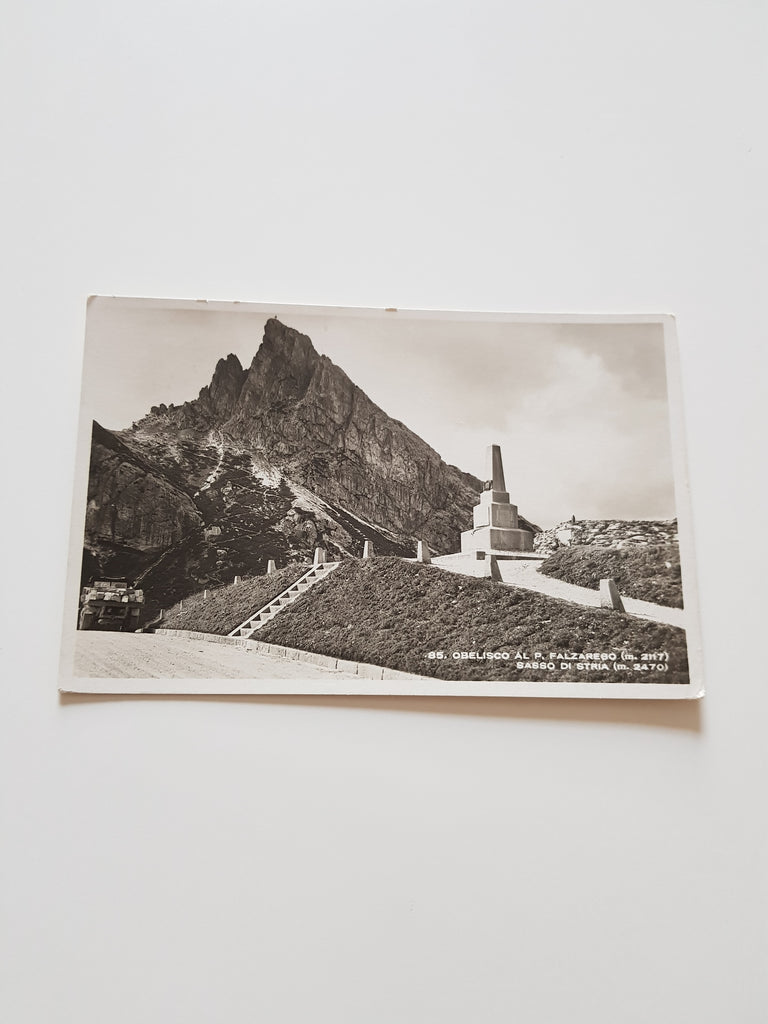 AK Obelisco al Passo Falzarego. Sasso di Stria. Gelaufen. Kleinformat. Verlag: Devich. Nummeriert: 85. Zustand: gut.