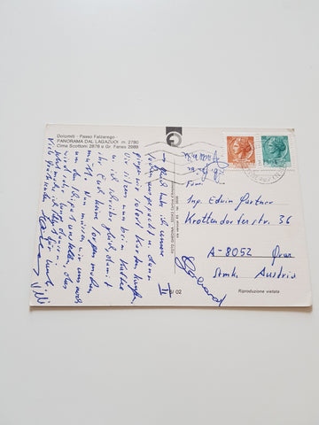 AK Passo Falzarego. Panorama dal Lagazuoi. Gelaufen. Großformat. Nummeriert: 6/02. Zustand: gut.