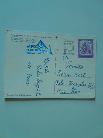 AK Passo Falzarego. Sasso di Stria. Gelaufen. Großformat. Nummeriert: 75. Zustand: gut, linkes unteres Eck angeknickt.