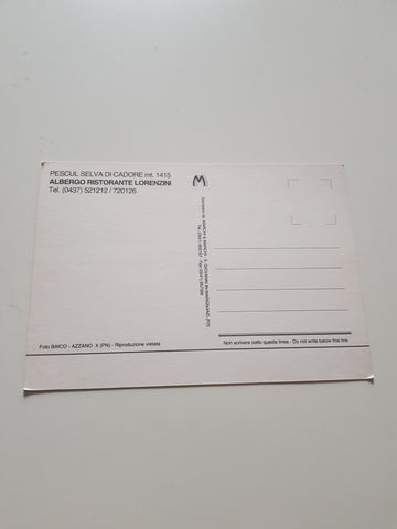 AK Pescul Selva di Cadore. Albergo Ristorante Lorenzini. Ungelaufen. Großformat. Zustand: gut.