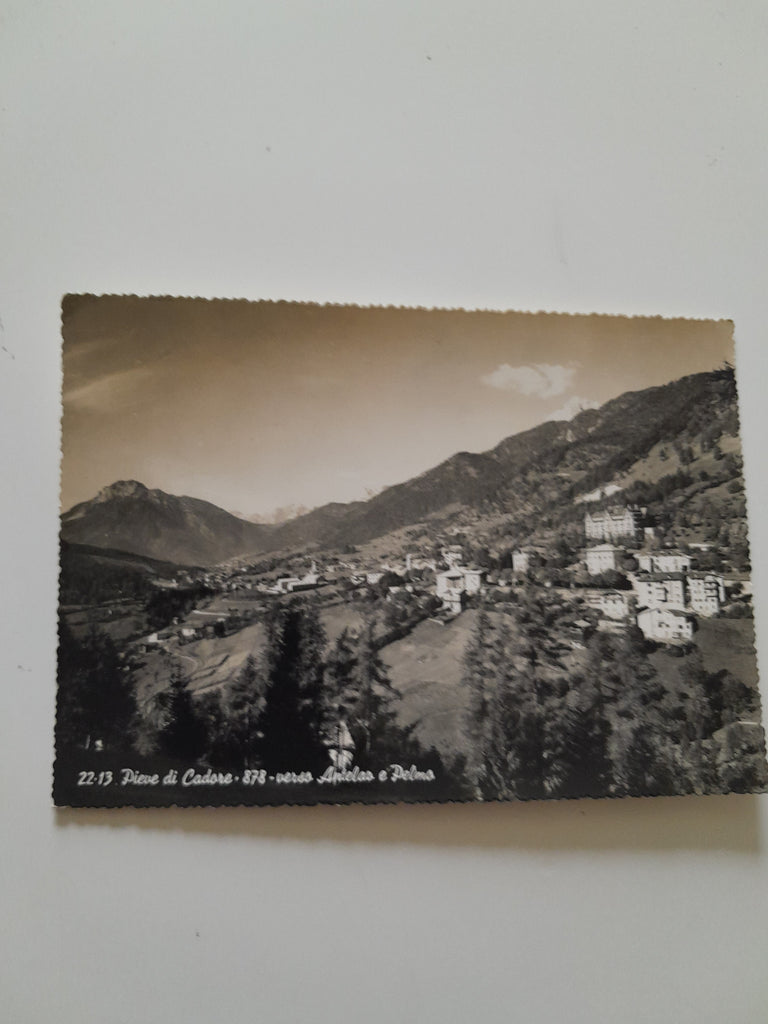 AK Pieve di Cadore verso Antelao e Pelmo. Gelaufen, aber Briefmarke wurde entfernt. Großformat. Nummeriert: 22-13. Zustand: gut.
