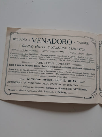 Folder Belluno. Cadore. Grand Hotel Venadoro e Stabilimento Idroterapico. Zustand: gut, leicht bestoßen.