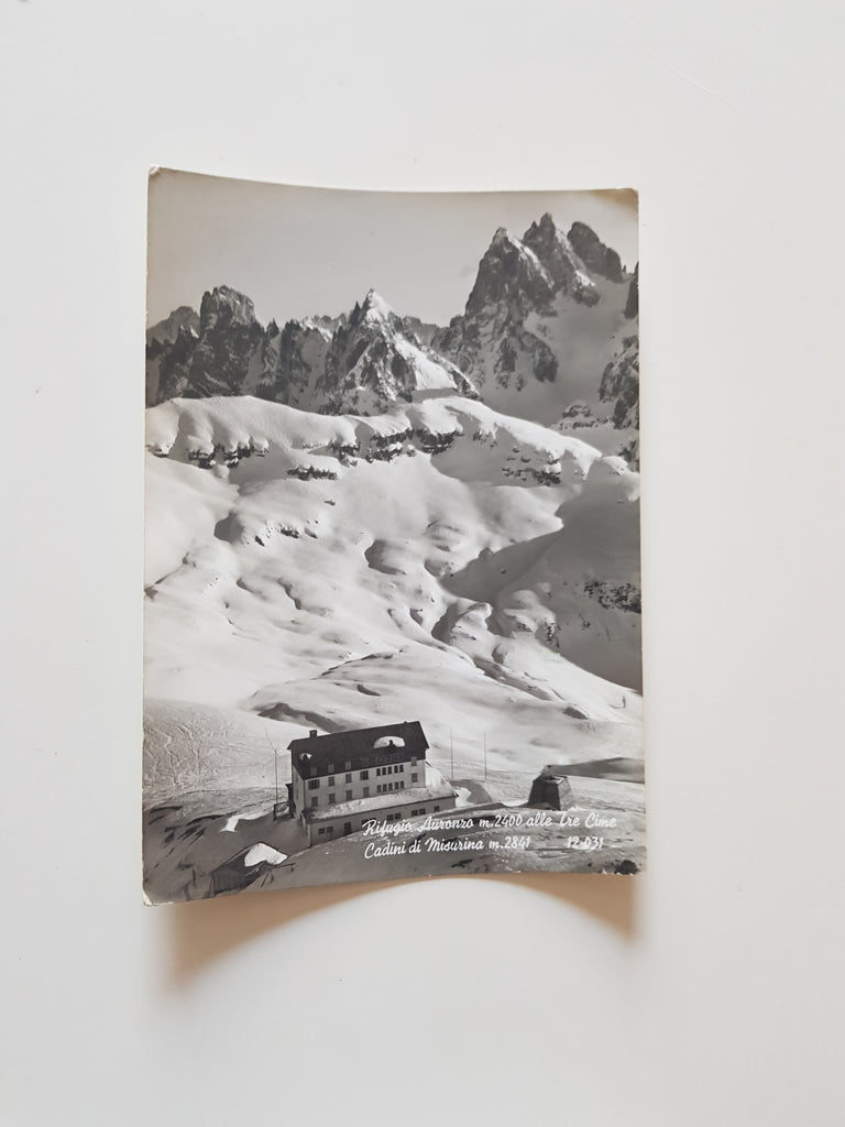 AK Rifugio Auronzo. Alle trre Cime. Cadini di Misurina. Gelaufen. Großformat. Nummeriert: 12-031. Zustand: rechtes unteres Eck geknickt.