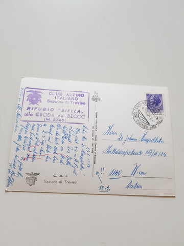 AK Rifugio Biella. Le Tofane Col Becchei. Gelaufen. Großformat. Nummeriert: 8-12. Zustand: gut.