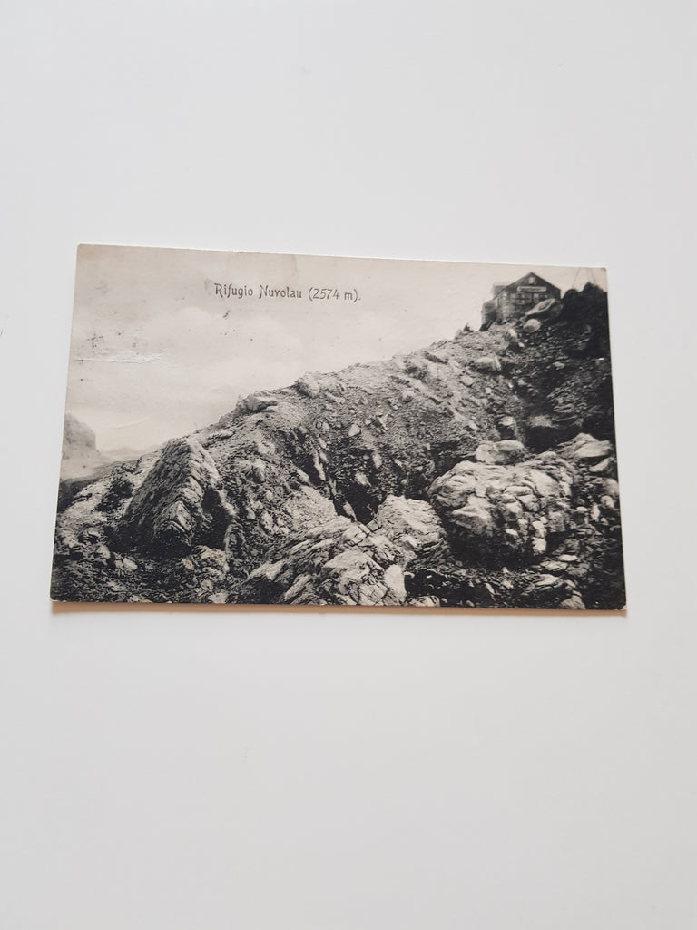 AK Rifugio Nuvolao. Gelaufen, aber Briefmarke wurde entfent. Kleinformat. Verlag: Zardini. Zustand: stärker bestoßen.