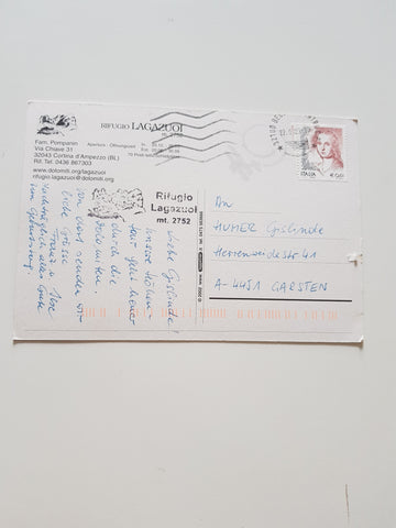 AK Rifugio Lagazuoi. Cortina. Gelaufen. Neues Großformat. Zustand: linkes unteres Eck geknickt, am unteren Eck berieben.