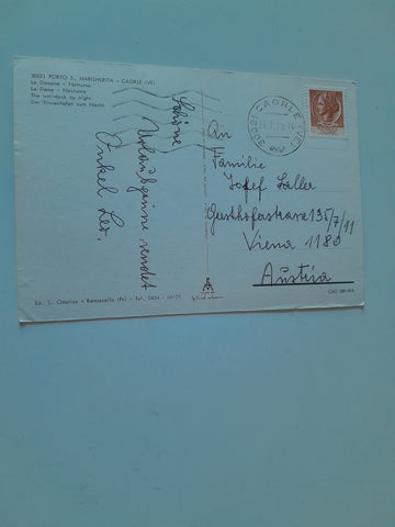 AK Caorle. Porto S. Margherita. La Darsena - Notturno. Gelaufen. Großformat. Verlag: Odorico. Nummeriert: 280/418. Zustand: Ecken und am oberen Rand angeknickt.