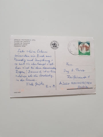 AK Arquà Petrarca. Tomba del Petrarca. Gelaufen. Großformat. Nummeriert: 8/29. Zustand: Einrisse am linken Rand oben, rechtes oberes Eck angeknickt.
