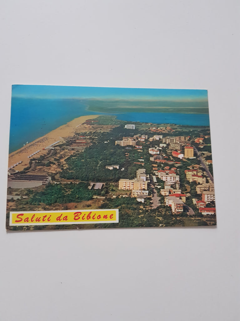 AK Saluti da Bibione. Gelaufen. Großformat. Zustand: gut, rechtes oberes Eck angeknickt.