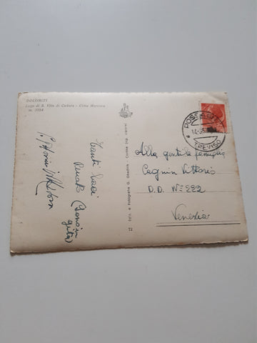 AK Lago di San Vito di Cadore. Gelaufen. Großformat. Nummeriert: 72. Zustand: linkes oberes Eck geknickt.