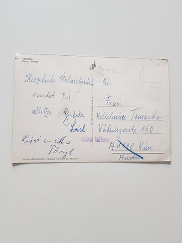AK Venezia. Canal Grande. Gelaufen, aber Briefmarke wurde entfernt. Kleinformat. Zustand: stärker bestoßen.