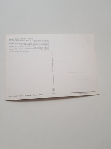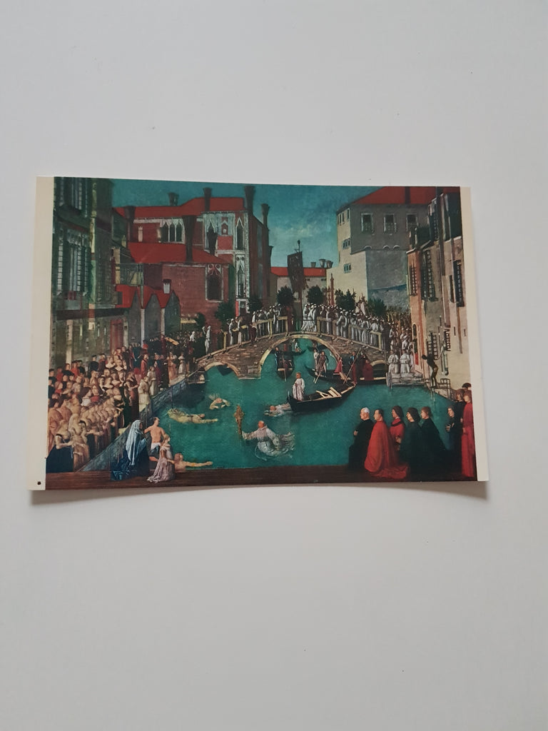 AK Venezia. Gentile Bellini:  Miracolo della Reliquia della S. Croce caduta nel Canale di S. Lorenzo. Gallerie dell'Accademia. Ungelaufen. Großformat. Nummeriert: 2045. Zustand: gut.