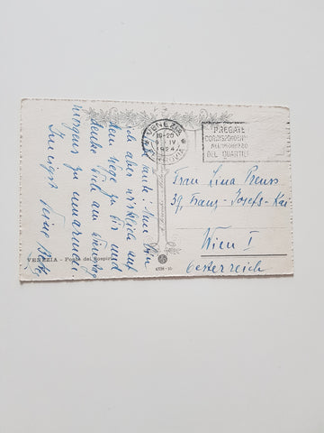 AK Venezia. Ponte dei Sospiri. Gelaufen, aber Briefmarke wurde entfernt. Kleinformat. Nummeriert: 4338-10. Zustand: leicht bestoßen.