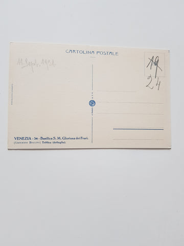 AK Venezia. Basilica S.M. Gloriosa dei Frari. Ungelaufen. Kleinformat. Nummeriert: 34. Zustand: gut.