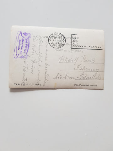 AK Venezia - Il Molo. Gelaufen, aber Briefmarke wurde entfernt. Kleinformat. Zustand: gut.