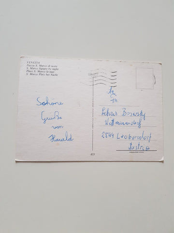 AK Venezia. Piazza S. Marco di notte. Gelaufen, aber Briefmarke wurde entfernt. Großformat. Nummeriert: 855. Zustand: rechtes unteres Eck geknickt, sonst leichte Läsuren.