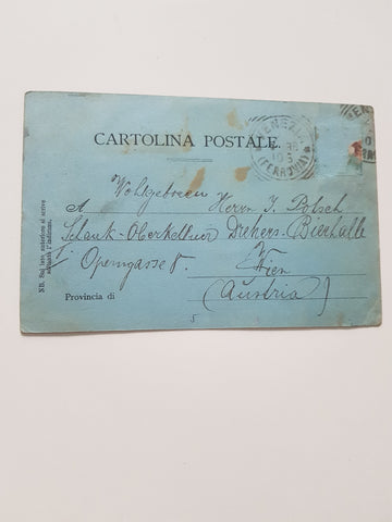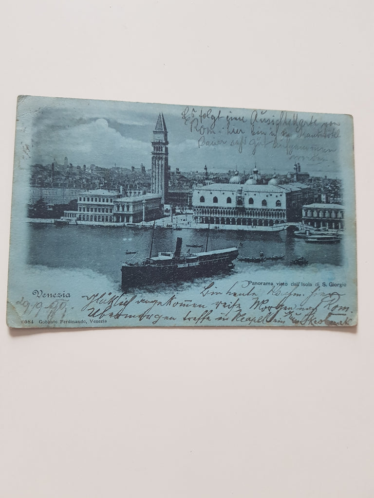 AK Venezia. Panorama visto dall'Isola di S. Giorgio. Gelaufen, aber Briefmarke wurde entfernt. Kleinformat. Zustand: stärker bestoßen.