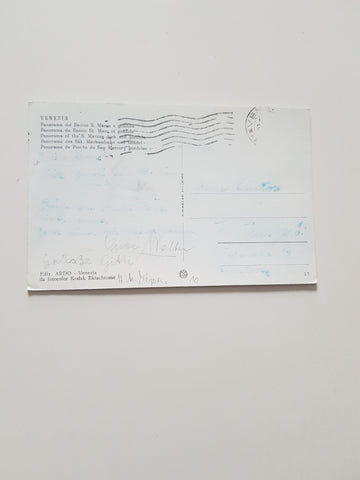 AK Venezia. Panorama del Bacino S. Marco e gondola. Gelaufen, aber Briefmarke wurde entfernt. Kleinformat. Nummeriert: 37. Zustand: leicht bestoßen.