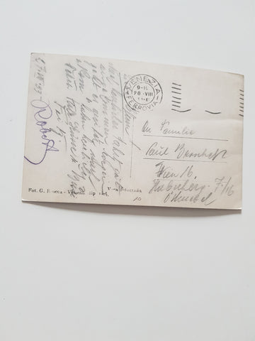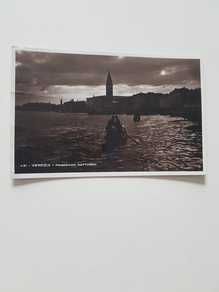 AK Venezia. Panorama Notturno. Gelaufen, aber Briefmarke wurde entfernt. Kleinformat. Nummeriert: 431. Zustand: stärker bestoßen.