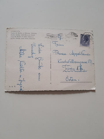 AK Venezia. Ponte di Rialto e Albergo Marconi. Gelaufen. Großformat. Nummeriert: 15. Zustand: Ecken geknickt, stempelfleckig.