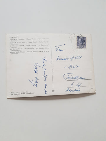 AK Venezia. Basilica di S. Marco - Palazzo Ducale - Isola S. Giorgio Notturno. Gelaufen. Großformat. Nummeriert: 29. Zustand: leicht knittrig.