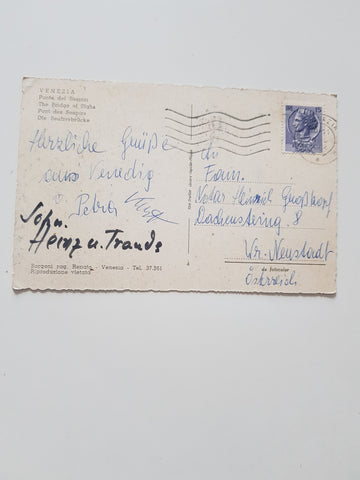 AK Venezia. Ponte dei Sospiri. Gelaufen. Kleinformat. Nummeriert: 4. Zustand: rechtes oberes Eck angeknickt.