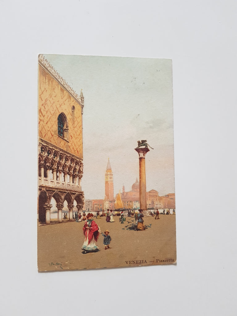 AK Venezia - Piazzetta. Gelaufen. Kleinformat. Zustand: Ecken leicht geknickt bzw. mit Steckalbumdruckspuren.