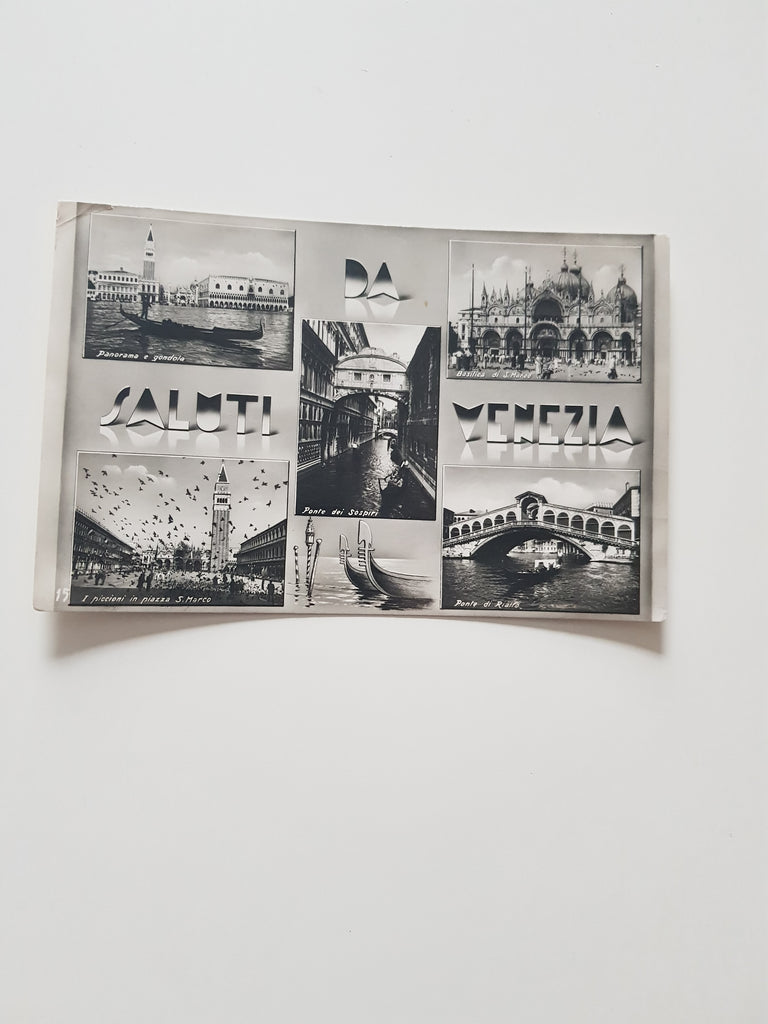 AK Saluti da Venezia. Gelaufen. Kleinformat. Zustand: linkes oberes Eck und am rechten Rand geknickt.